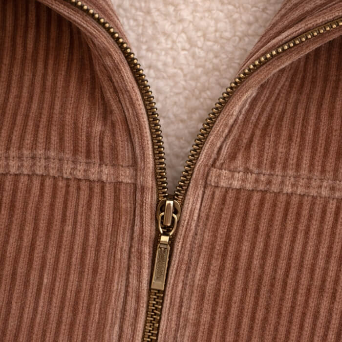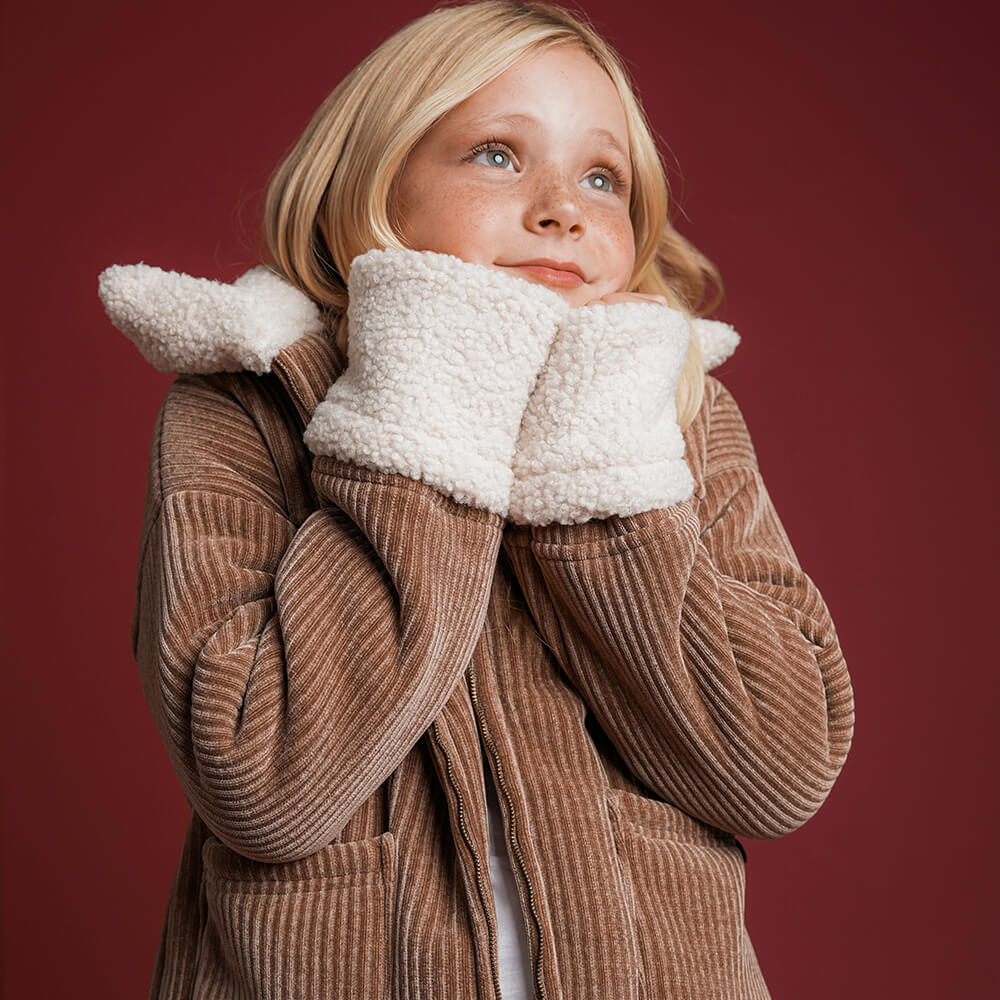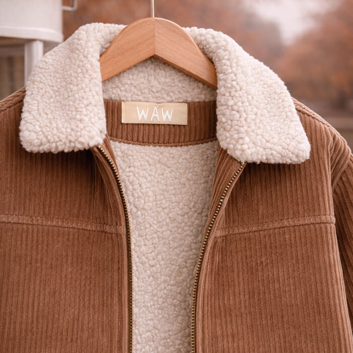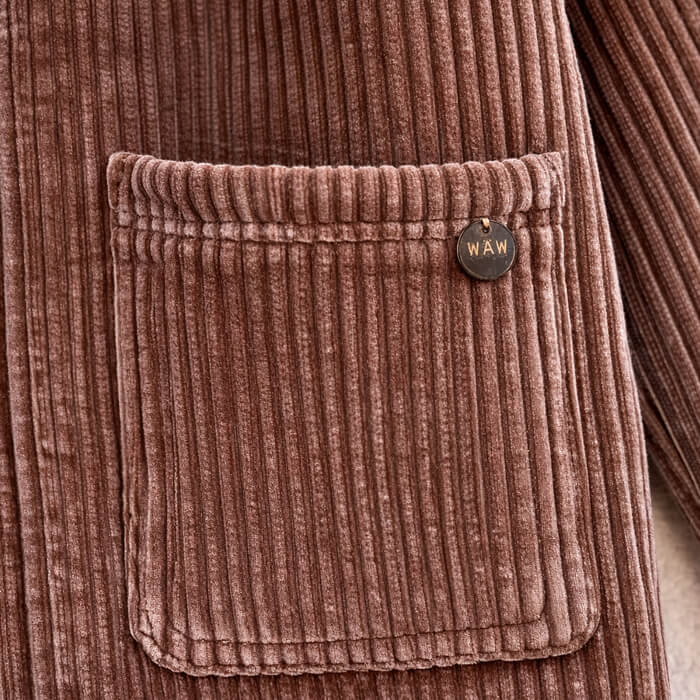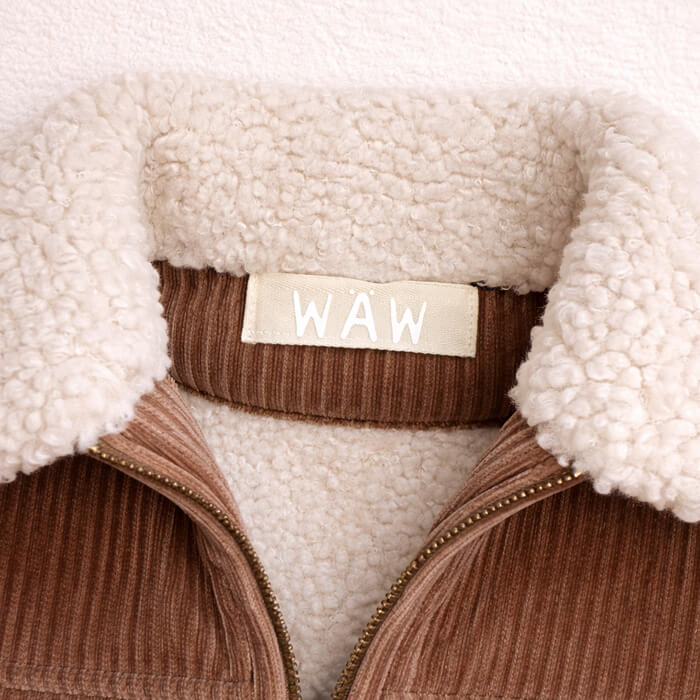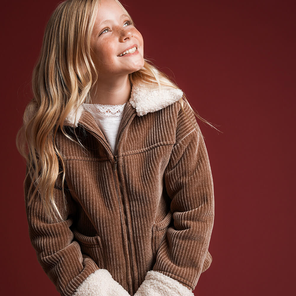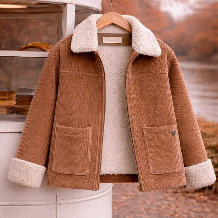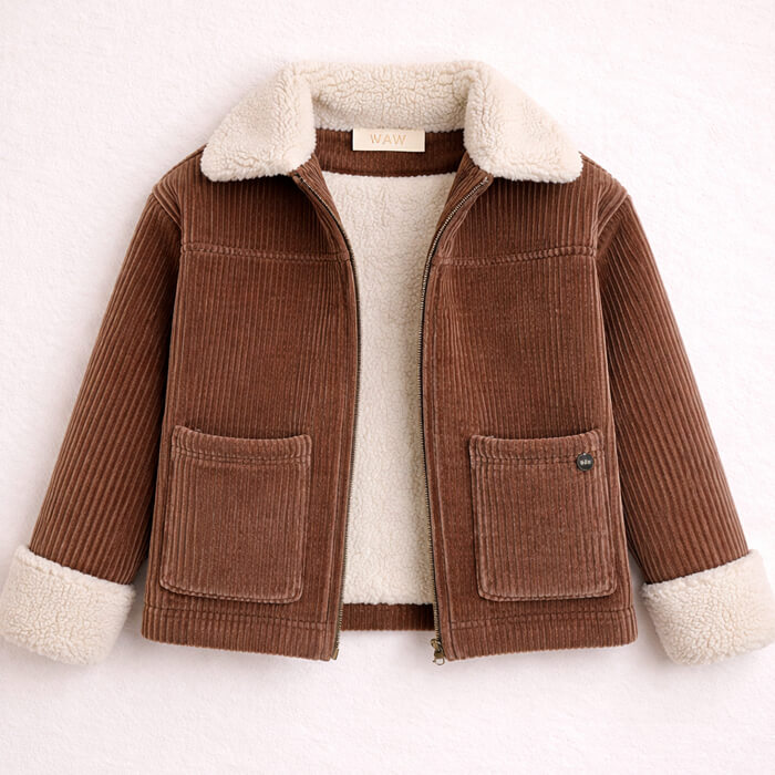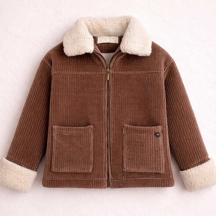 Abrigo de corderoy forrado integramente en corderito a contratono. recorte de canesu en frente y bolsillos plaque. grifa metalica old gold. cuello y puños reversibles a contratela. super abrigada