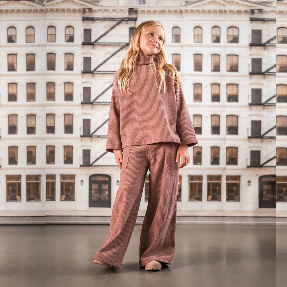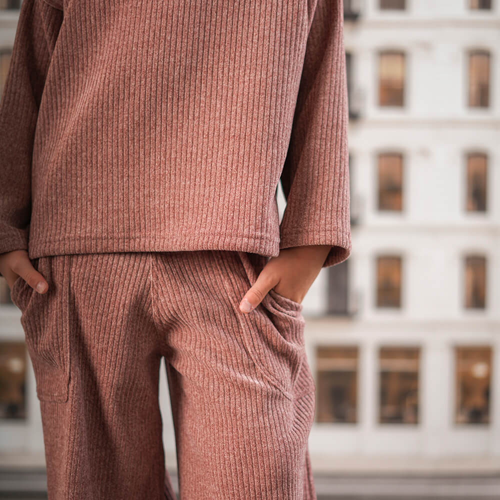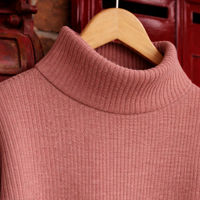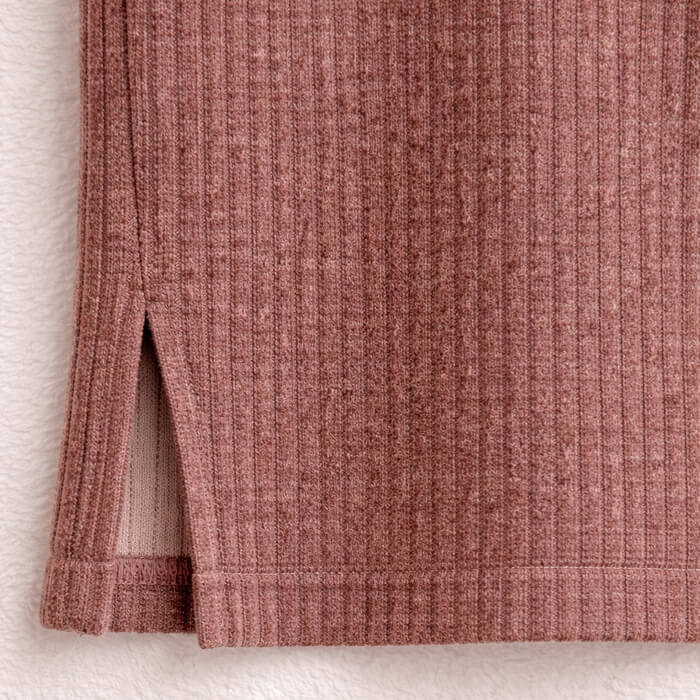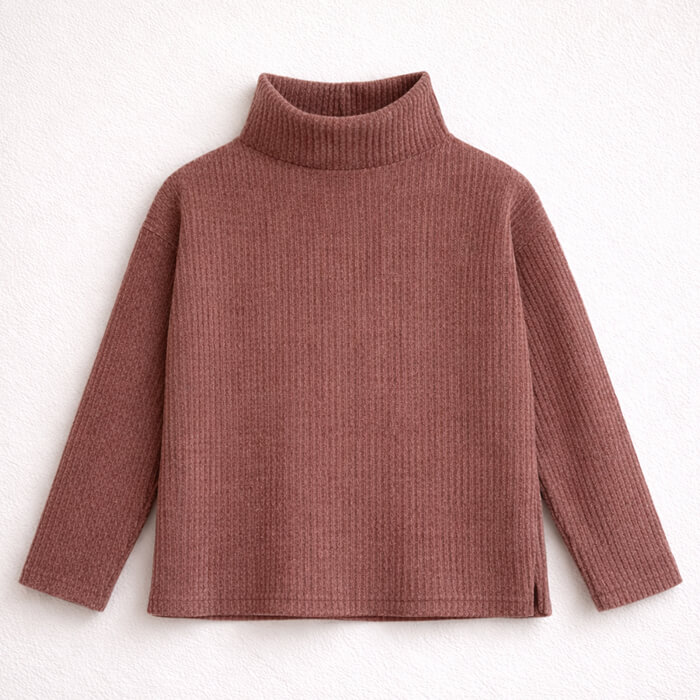 Polera de corderoy de punto abrigada, de corte amplio con cuello alto y tajitos en laterales.